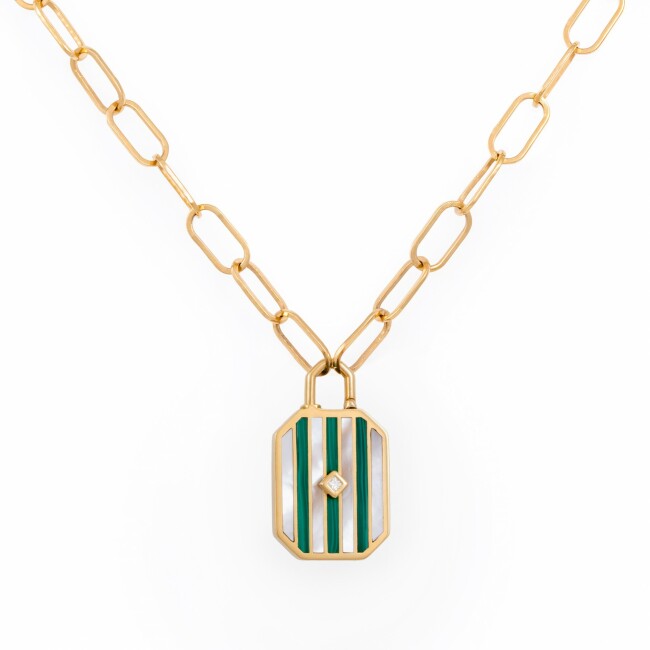 Pendentif Atelier Nawbar Lock'In Strenght en or jaune, diamants, nacre et malachite