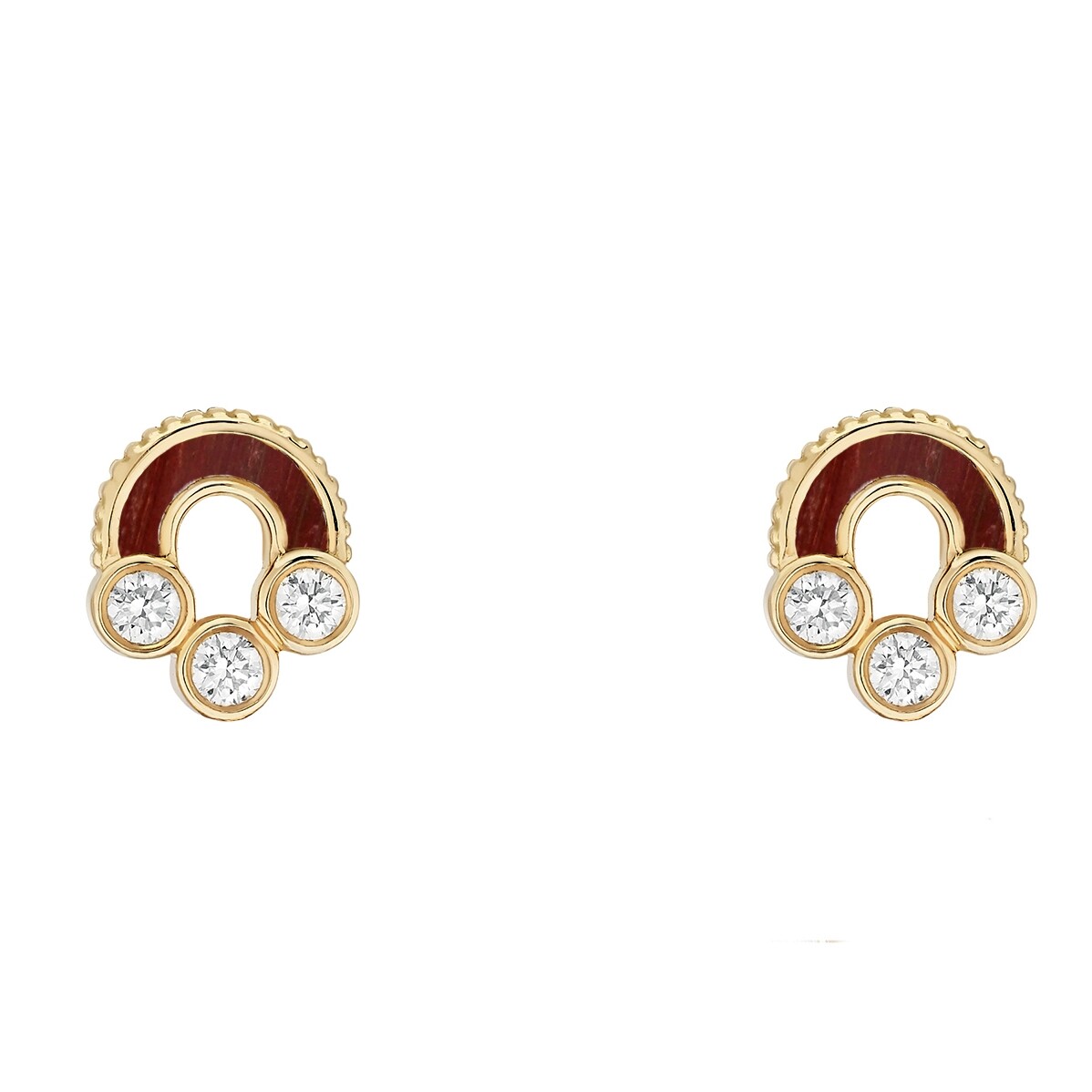 Magnetic bull's-eye earrings in yellow gold, diamonds, and bull's-eye