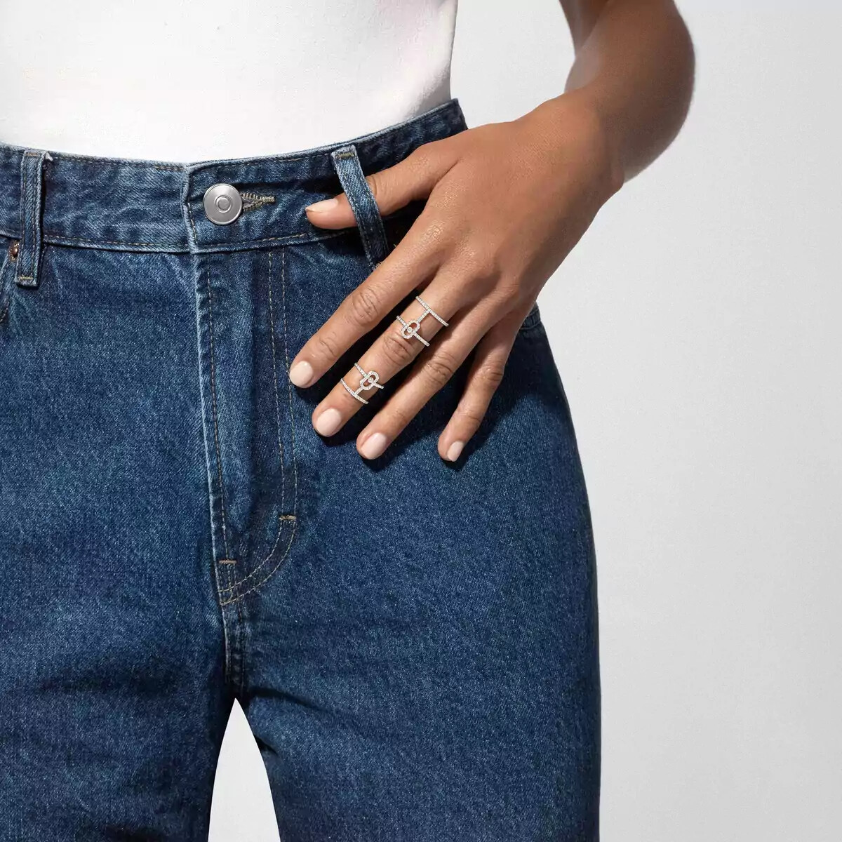 Messika Move Uno double ring, white gold and pave diamonds