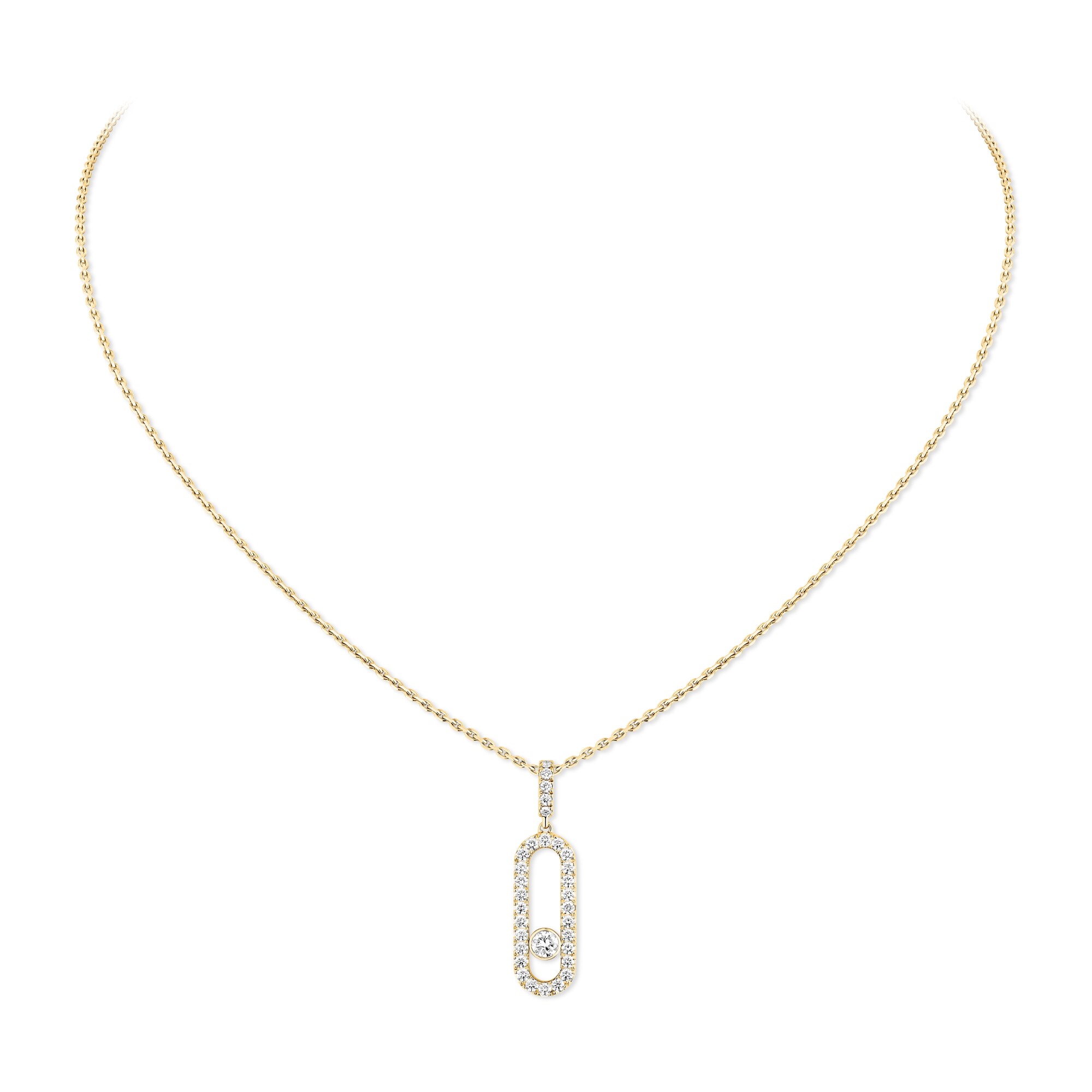 Messika Move Uno necklace, yellow gold and pave diamonds, large medium