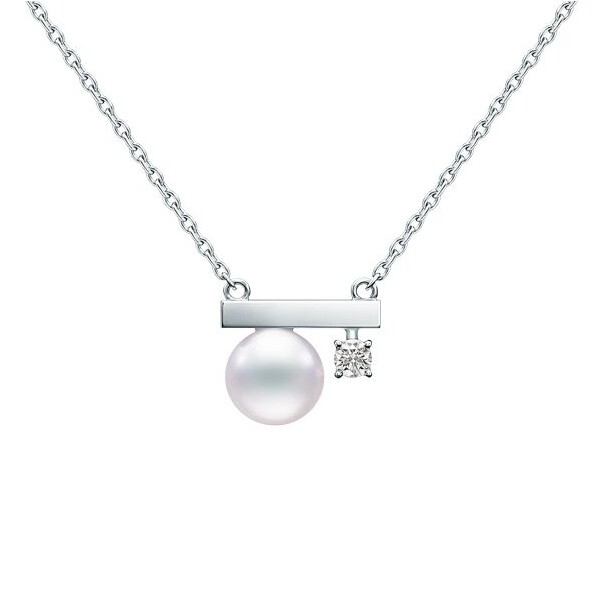 Tasaki Balance necklace Small model in white gold, Akoya pearl, and diamond