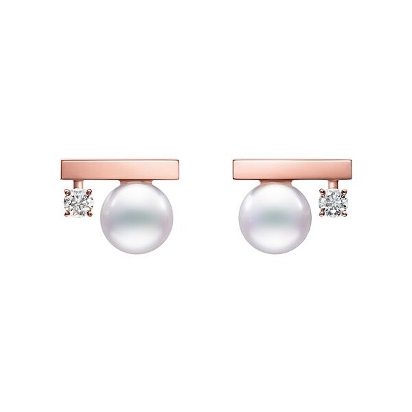 Tasaki Balance small earrings in Sakuragold™ rose gold, Akoya pearls, and diamonds
