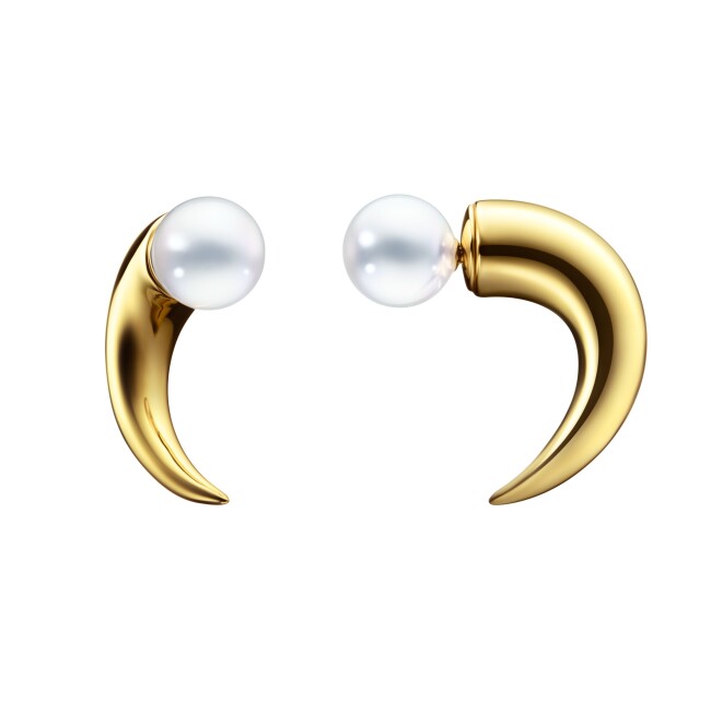Danger Boucles d'oreilles Tasaki Danger Horn en or jaune et perles Akoya