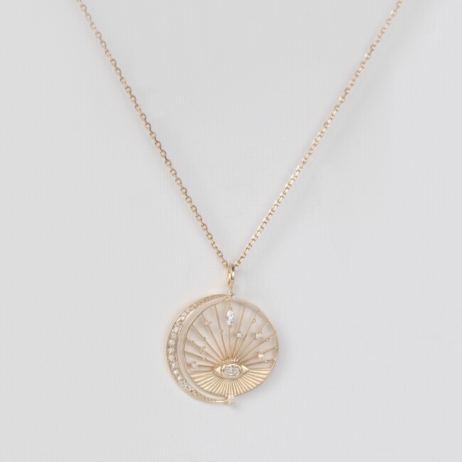 Pendentif Céline Daoust Sun & Moon Medal en or jaune et diamants