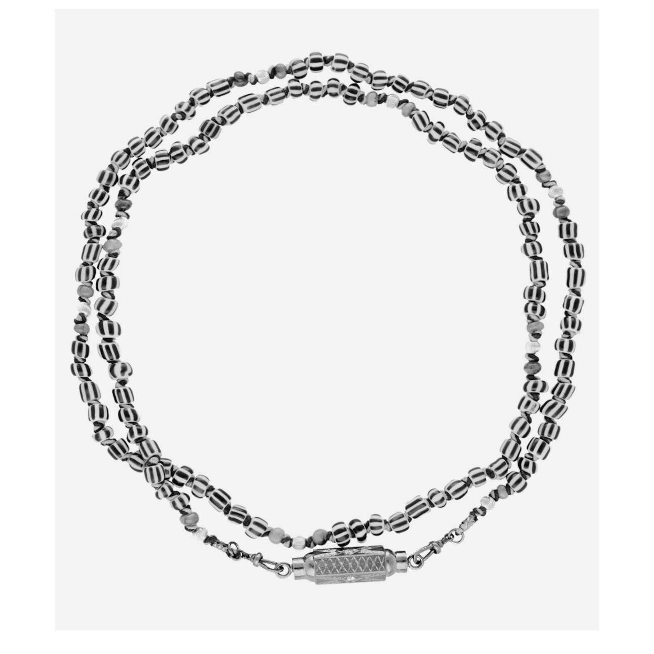 Baby Locket Marie Lichtenberg en or noir rhodiée, perles de ghana blanc et noir 73cm