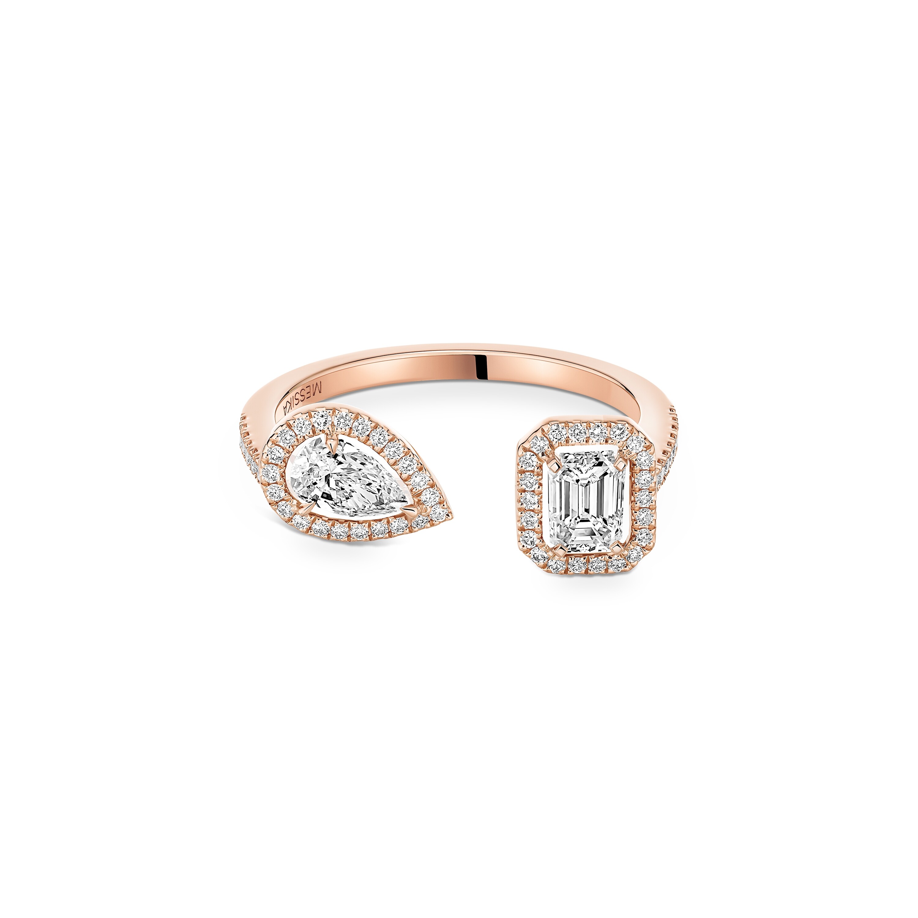 Cette bague My Twin Toi & Moi 0,25ct en or rose 18 carats est composé d'un diamant taille poire et d'un diamant taille emeraude de 0,25 carat chacun.