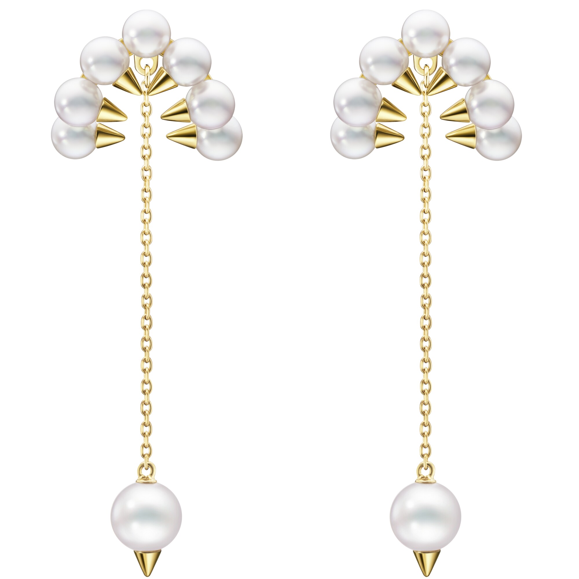 Boucles d'oreilles pendantes Tasaki Danger Trap en or jaune et perles Akoya