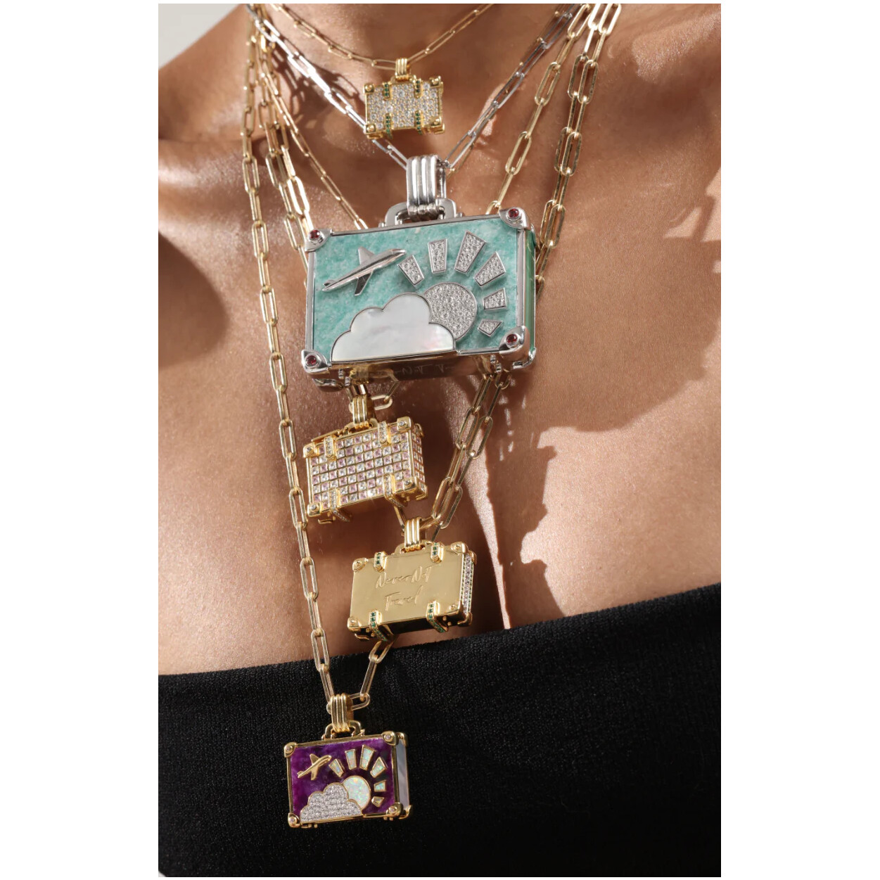 NeverNoT Travel Collier NeverNot Travel « Night and Day Weekend » Suitcase en or jaune, diamants noirs et diamants blancs.