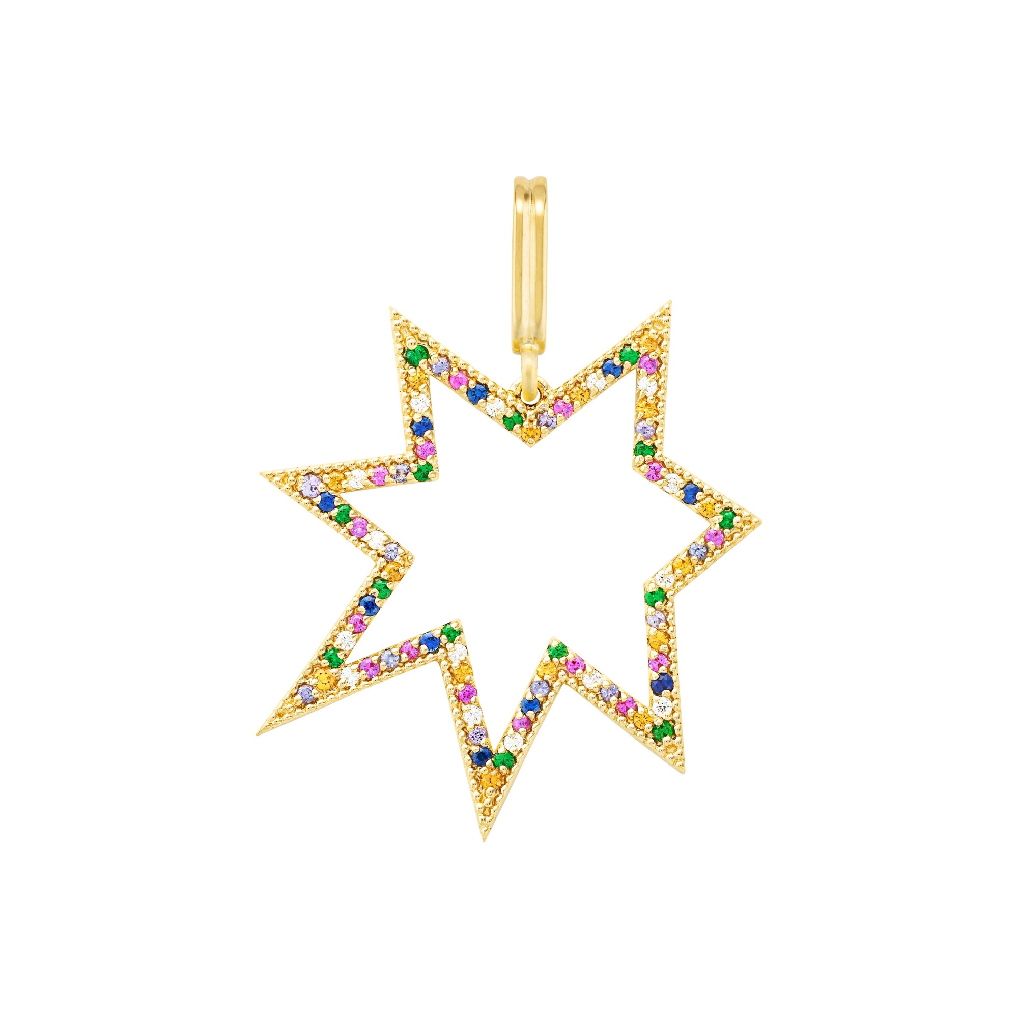 Médaille Mellerio Etoile Tutti Frutti en or jaune, Grenats spessartites, saphirs et Tsavorites